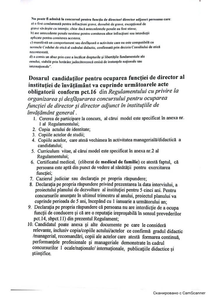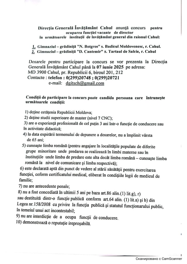 Direcția Generală Învățământ Cahul anunță concurs pentru ocuparea funcției de director